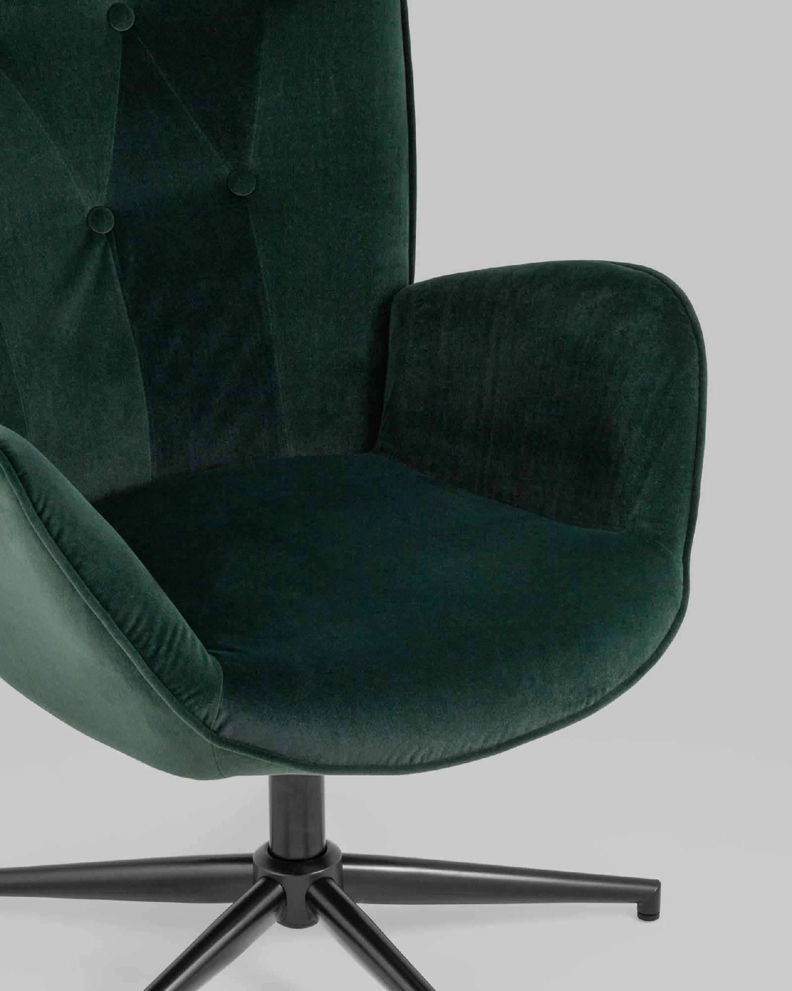 Мягкое сиденье с высокой поддерживающей спинкой анатомической формы подарит комфорт и уют. В качестве обивки используется прочный износостойкий велюр с точечным декором. Металлическая ножка в черном цвете регулируется по высоте и обеспечивает хорошую устойчивость. Удобные подлокотники добавят комфорта. Кресло прекрасно смотрится в гостиной или столовой зоне. Высота сиденья 54 см. Высота подлокотников от пола составляет 61 см.
