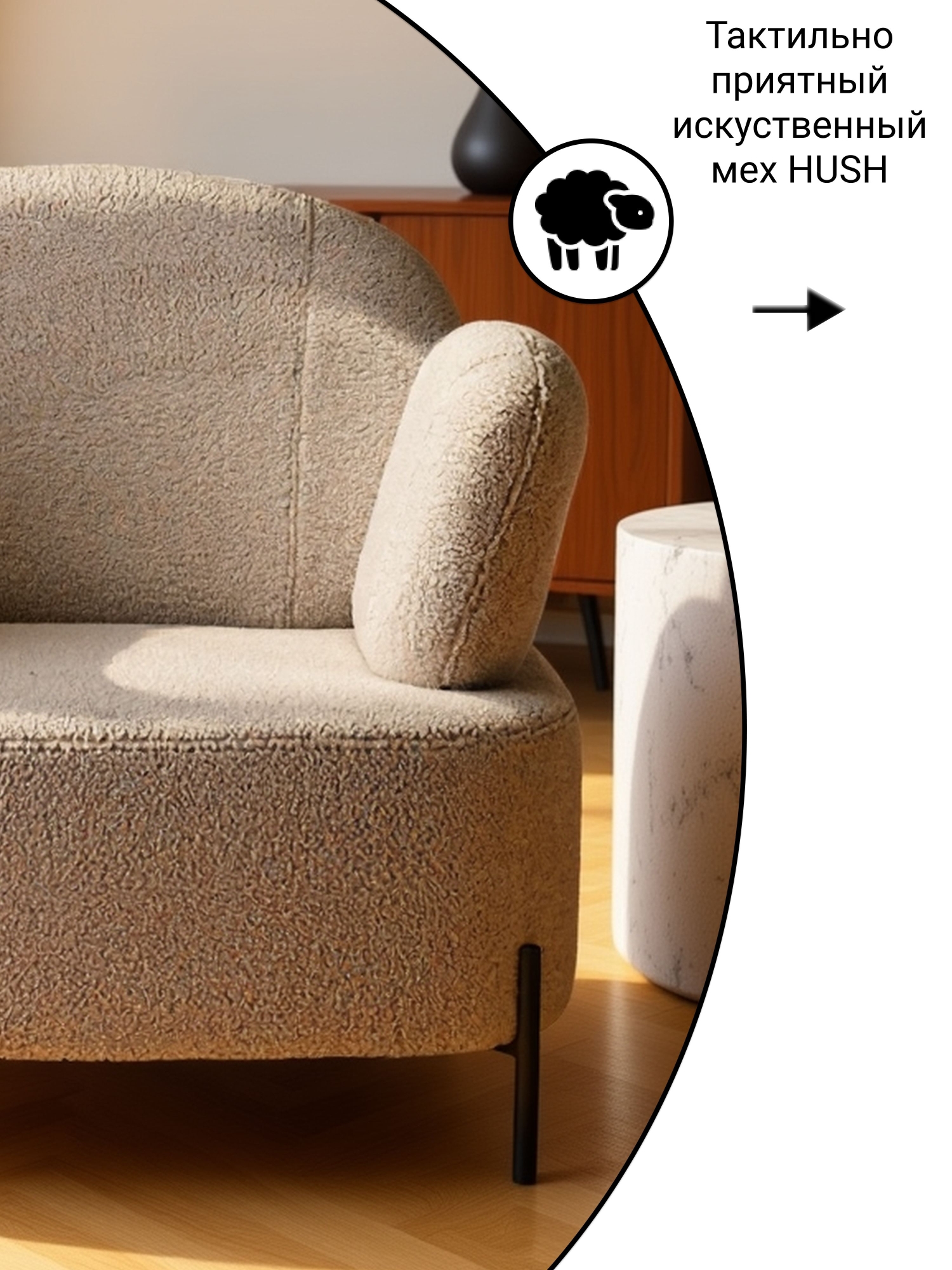 • Мягкость и тактильность: Экомех HUSH отличается особенно нежной, бархатистой поверхностью, которую хочется трогать снова и снова.