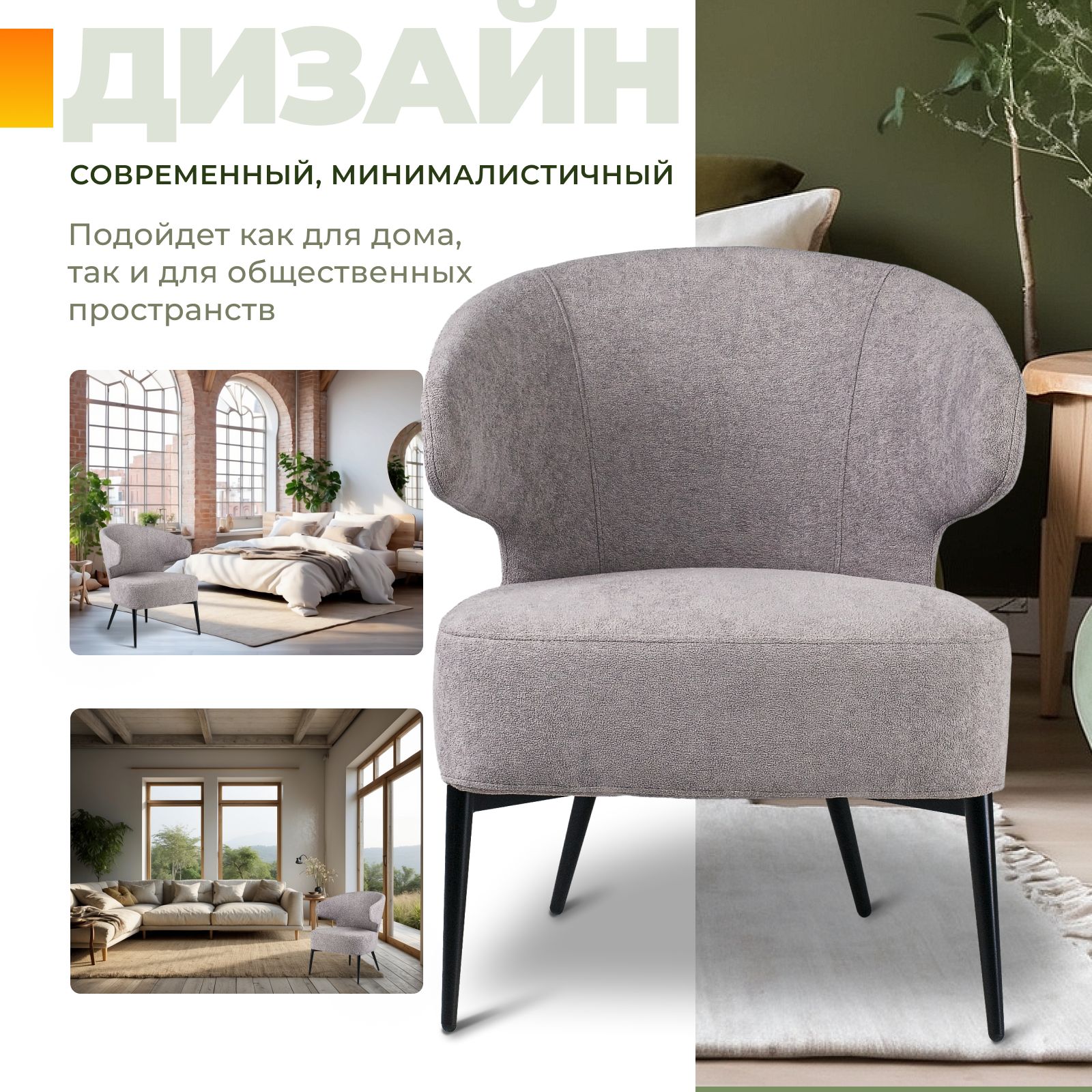 • Подходит для интерьеров в стиле минимализм, скандинавское кресло, модерн и современное кресло.