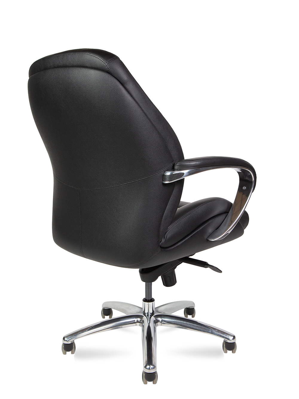Кресло руководителя First класса. Превосходное сочетание элегантности, комфорта и функциональности. Изготовлено из натуральной кожи, а спинка и нижняя часть сиденья отделаны экокожей. Сиденье и спинка кресла изготовлены из формованного PPU, обеспечивая дополнительный комфорт. Современный механизм качания с возможностью фиксации в любом положении, а также регулировка высоты и жесткости качания для индивидуальной настройки. Подлокотники выполнены из полированного алюминия с мягкими накладками из натуральной кожи. Крестовина также выполнена из полированного алюминия, а колеса изготовлены из PU. Кресло сертифицировано по стандарту BIFMA.