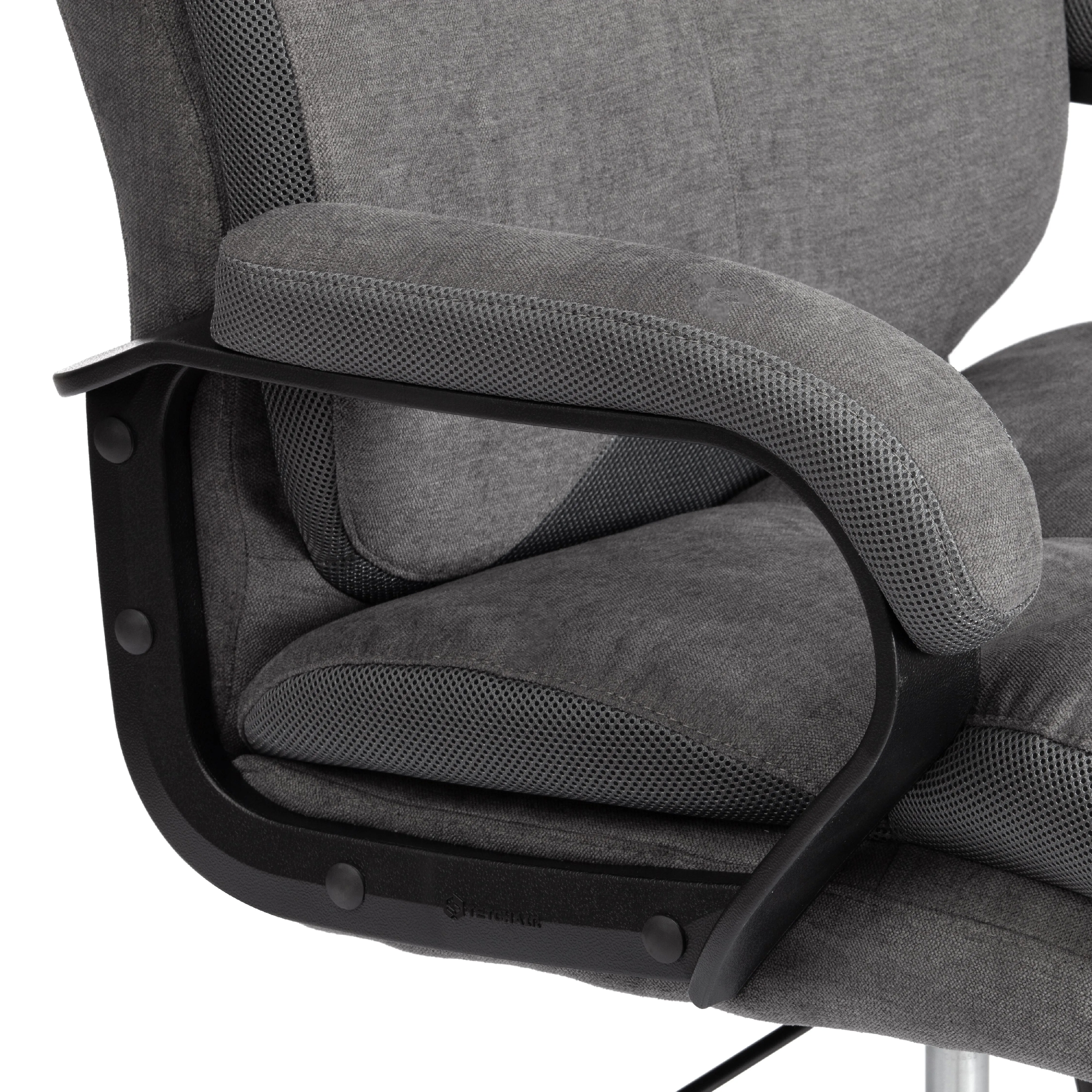 Эргономичная спинка, прочный каркас, мягкое сиденье компьютерного кресла DUKE metalBL - воплощение элегантности, практичности и солидности. Модель отлично впишется в дизайн рабочего кабинета как офиса, так и дома. Каркас из экологически безопасной фанеры толщиной до 15 мм гипоаллергенен и надежен. Широкое сиденье с мягким наполнителем из пенополиуретана стандартной плотности (до 35 кг/м2) с независимыми пружинными блоками подстраивается под контуры тела человека, обладает отличными эксплуатационными качествами. Регулировка высоты и наклона с фиксацией в любом положении до 15 градусов помогут принять комфортную позу для продолжительной работы. Cтальная крестовина покрытая черной порошковой краской (разборная), толщина стенки трубы 1,1 мм Соответствует стандарту BIFMA. Диаметр крестовины 700 мм. Крестовина обладает долгим сроком службы, не требует сложного ухода, не теряет своего первоначального внешнего вида на протяжении длительного времени. Полиуретановые ролики с прорезиненными вставками бесшумны, не повреждают напольное покрытие. Ролики и крестовина в креслах бренда TETCHAIR соответствуют стандарту BIFMA. Во всех креслах бренда TETCHAIR используются газлифты 3 класса, он способен выдерживать вес до 120 кг. Мягкий подголовник, удобные фиксированные подлокотники с накладками снимут напряжение с шеи и плеч. Офисное кресло, обитое прочной обивкой, выдерживает до 50 000 циклов на истирание по Мартиндейлу. Уникальная модель DUKE подчеркнёт безупречный вкус владельца и придаст интерьеру презентабельный вид. Максимальная нагрузка 120 кг. Компьютерное кресло поставляется в разобранном виде. Требуется простая сборка по прилагаемой инструкции.
