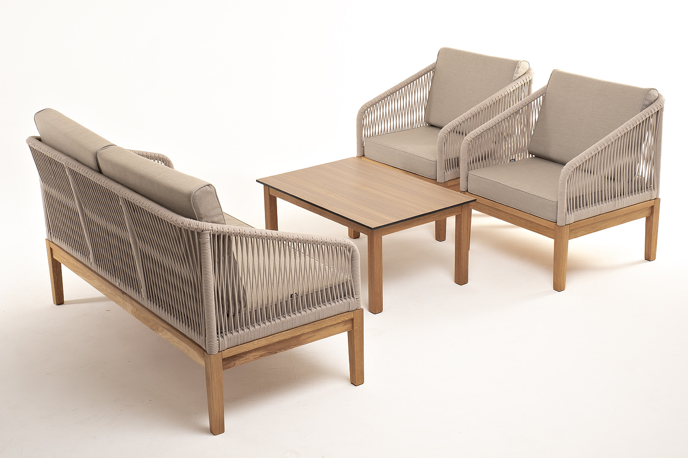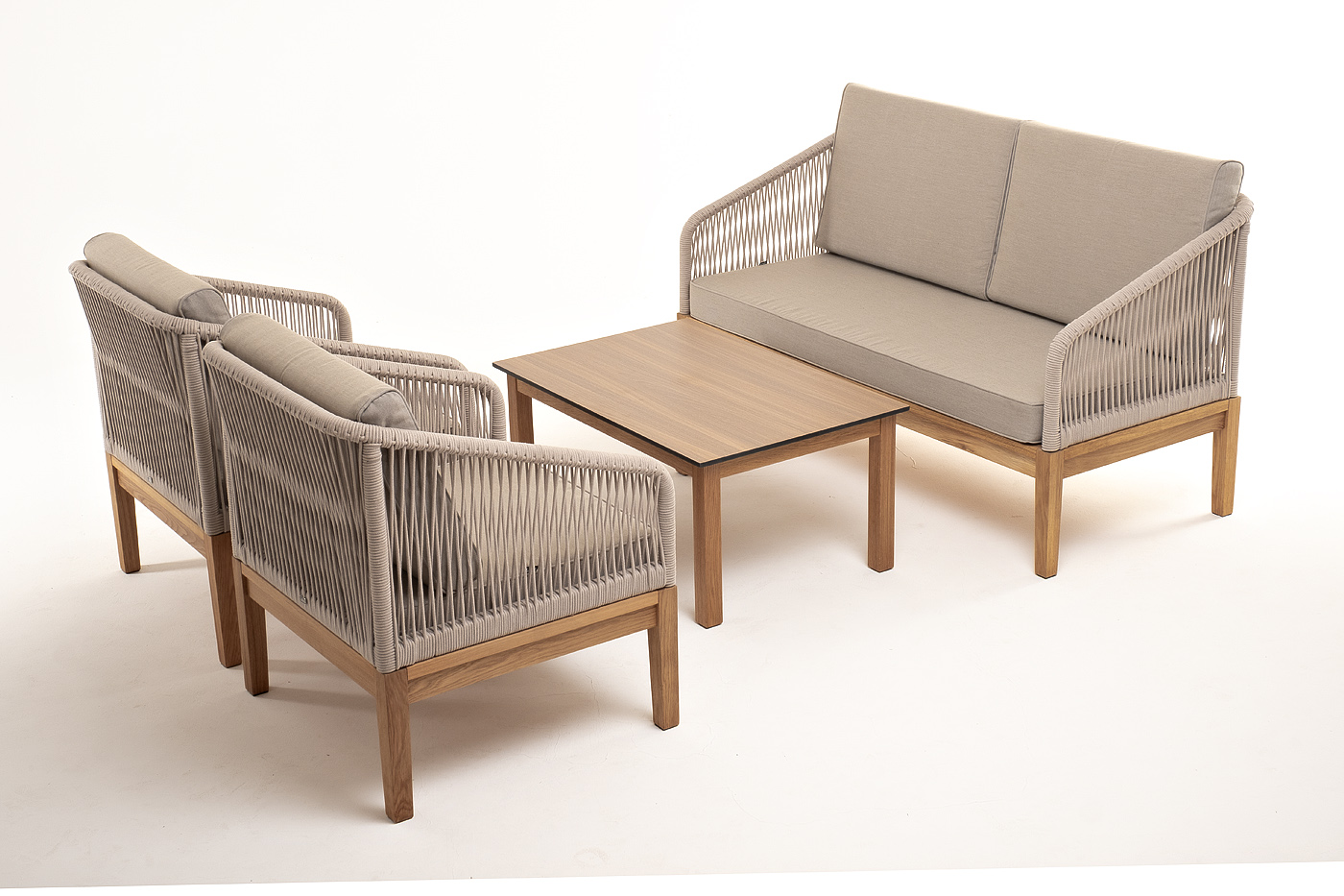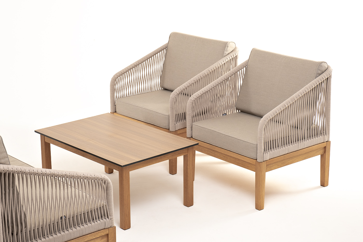 —"Канны" лаунж-зона 4-местная из роупа со столиком "Канны" цвета "дуб", основание дуб, роуп бежевый