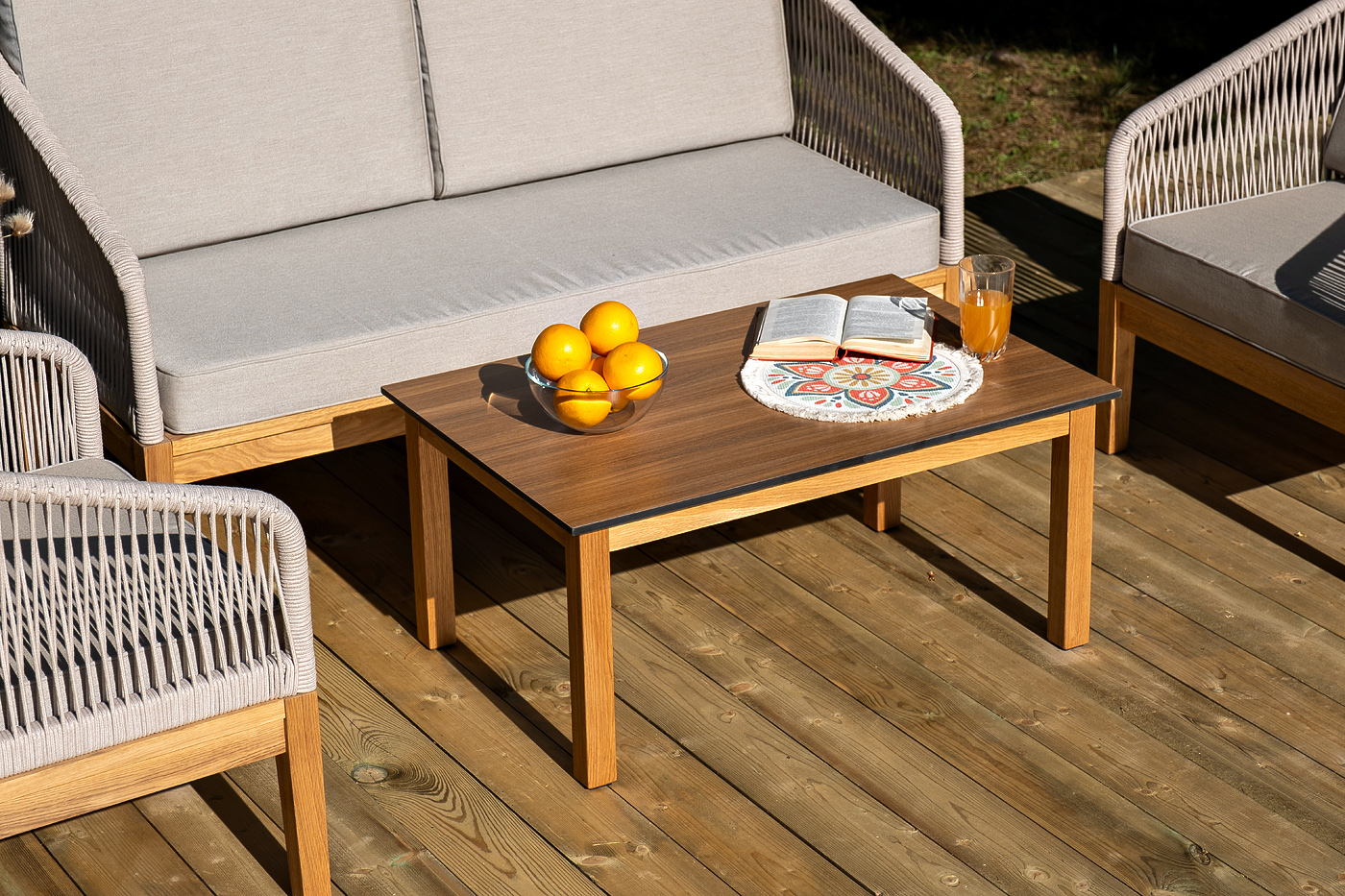 "Канны" лаунж-зона 4-местная из роупа со столом "Гранада" (серый гранит), основание дуб, роуп коричневый, ткань бежевая