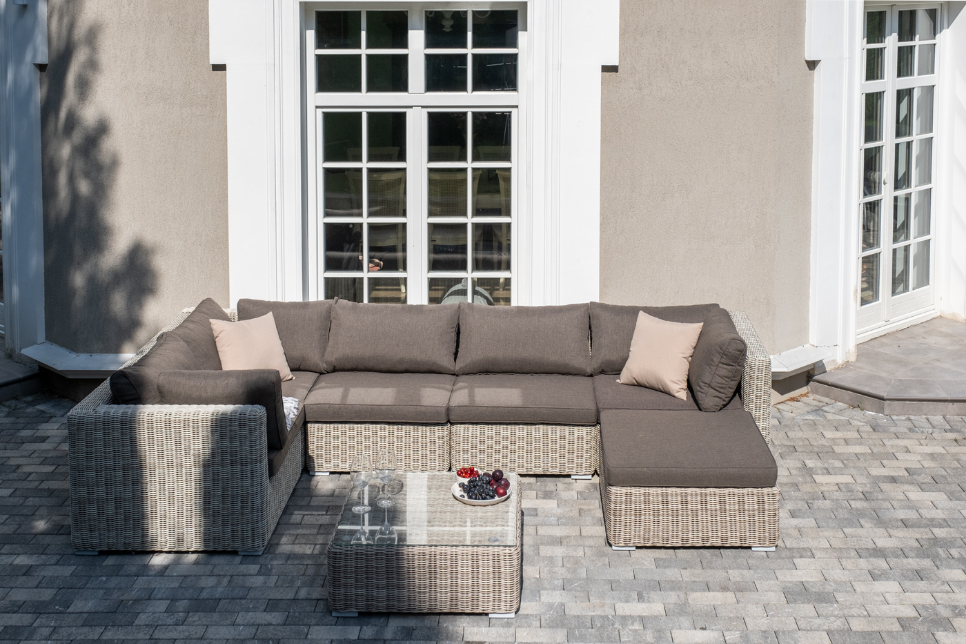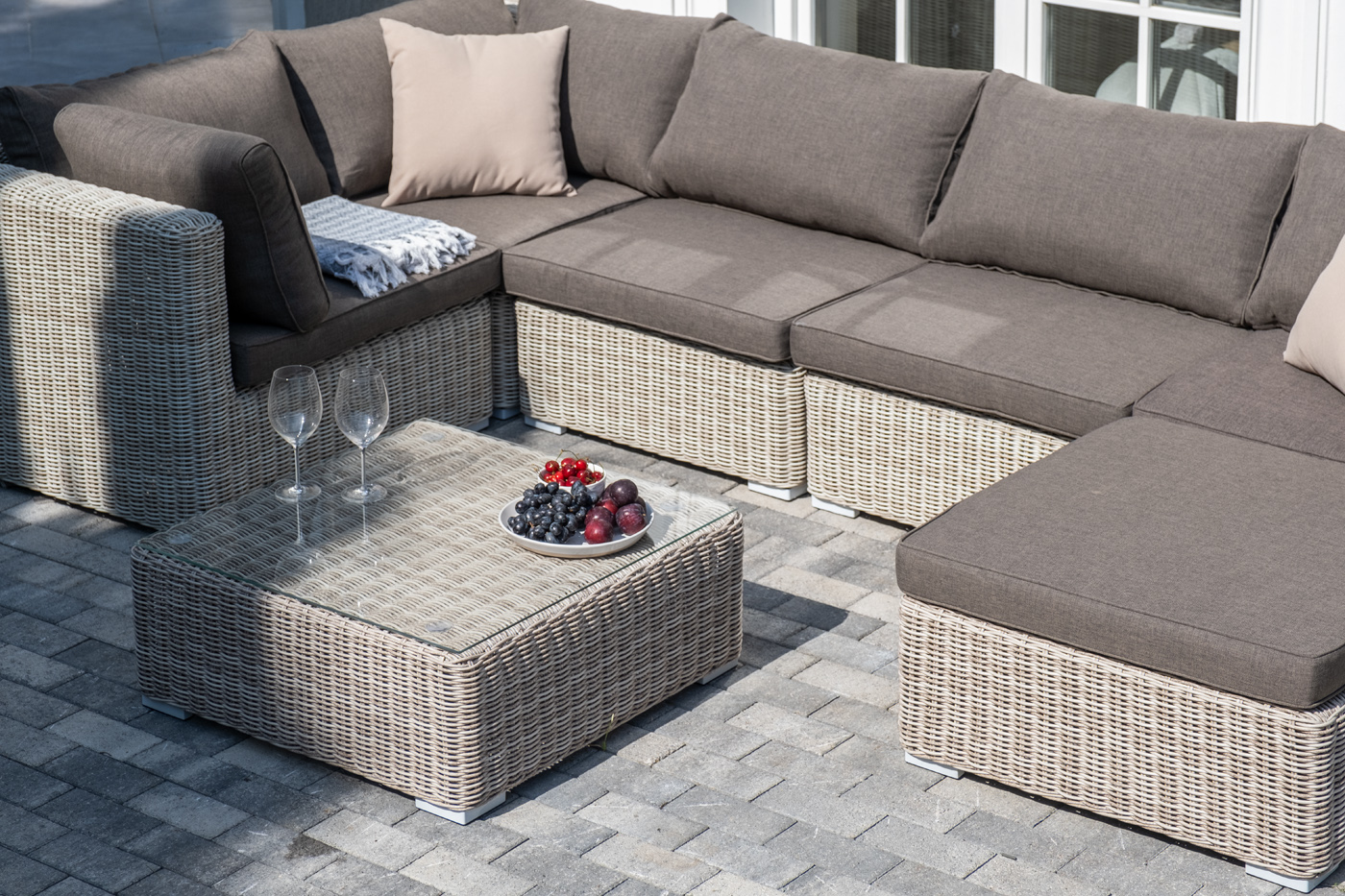 Лаунж-зона из искусственного ротанга бежевого цвета «Лунго» производит невероятное впечатление и окунает в мир уюта, благодаря продуманному и лаконичному дизайну.