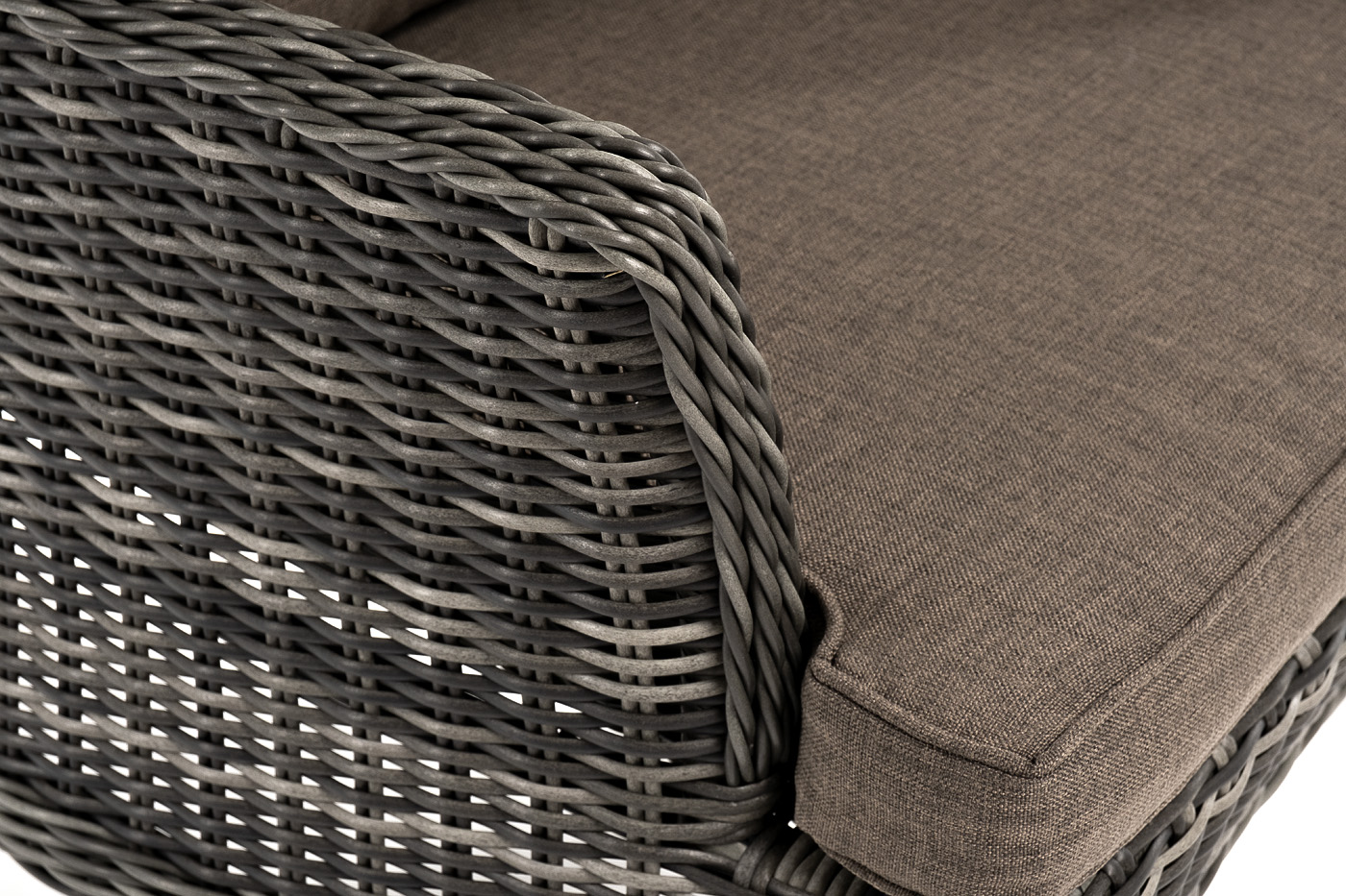 Каркас выполнен из высококачественного алюминия, который оплетен круглым искусственным ротангом графитового цвета.