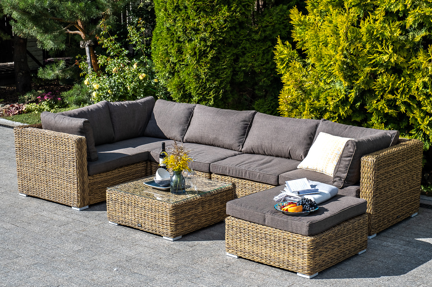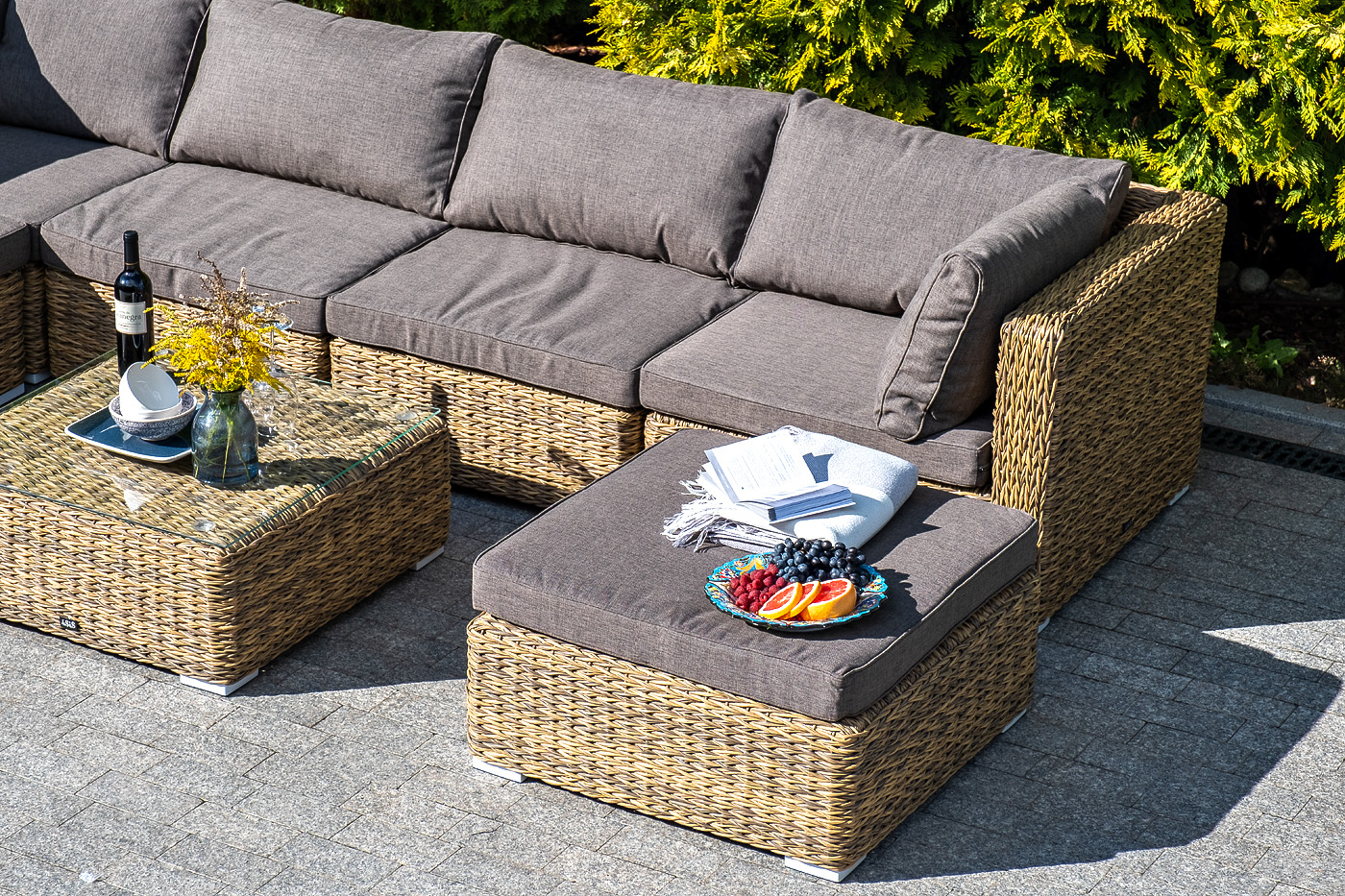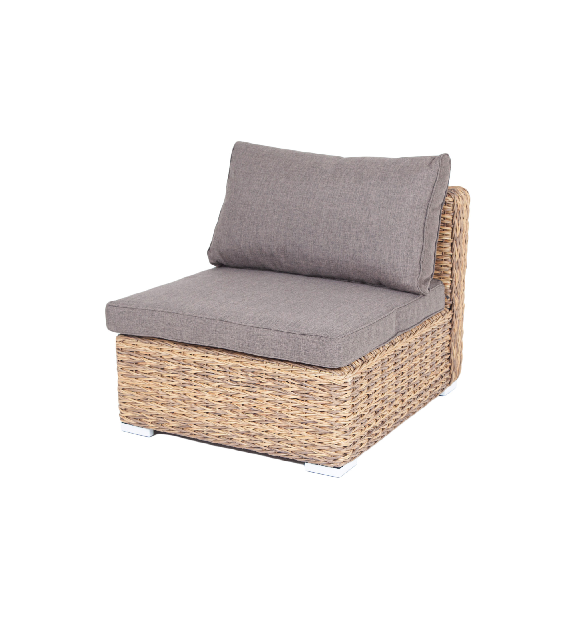 «Лунго» прямой модуль из искусственного ротанга вида «гиацинт», выполнен из алюминиевого каркаса, который оплетен вручную ротангом соломенного цвета.