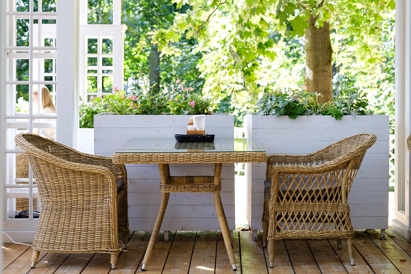 Плетеный садовый стол «Айриш» для обустройства обеденной зоны на открытом пространстве.