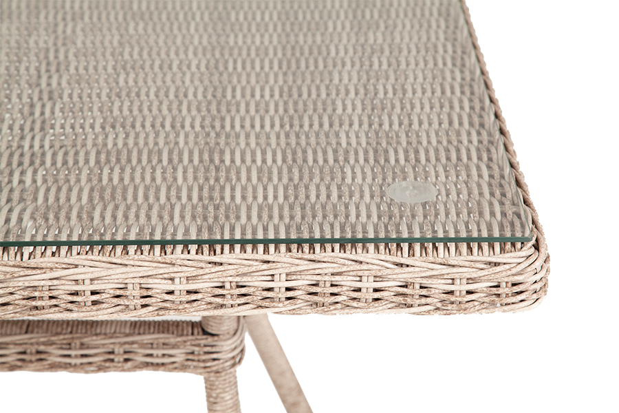 Плетеный стол для сада из искусственного ротанга «Айриш» бежевого цвета идеально вписывается в обеденное пространство на открытом воздухе.