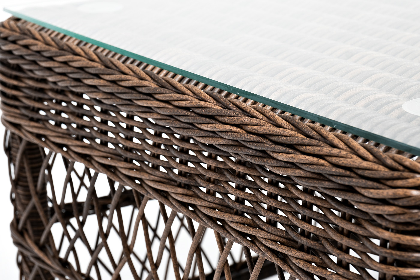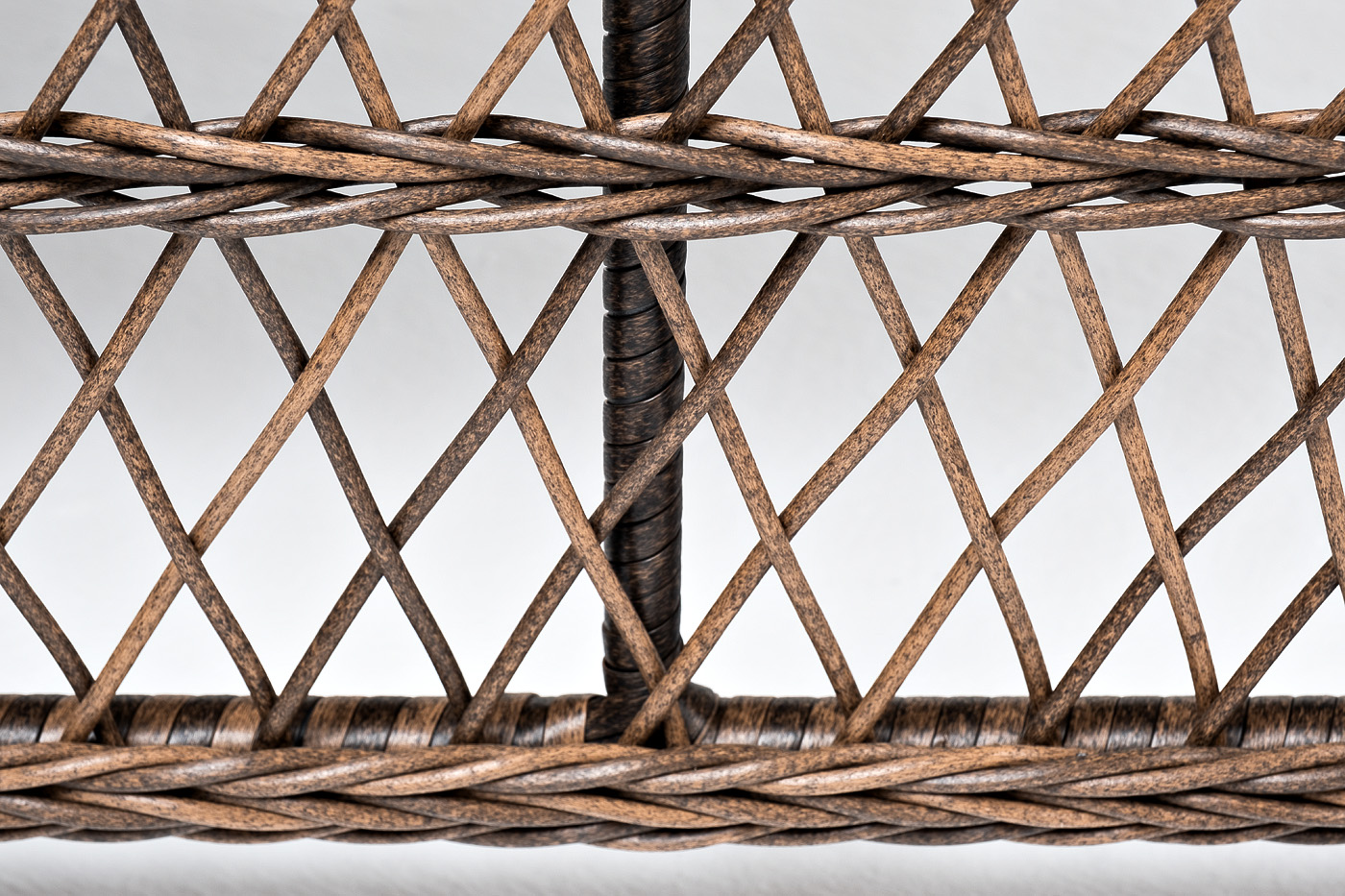 Каркас изготолен из алюминия, который гарантирует устойчивость при размещении на любой поверхности. В качестве декоративного элемента выступает ручная оплетка на основе круглого искусственного ротанга, представленного в коричневом оттенке.