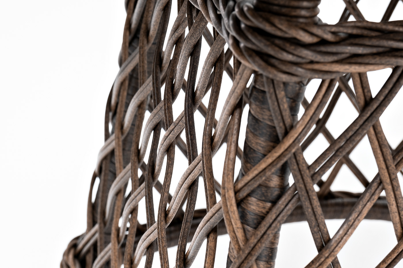 Каркас стола изготовлено из алюминия, благодаря чему его легко перемещать. Металл оплетен синтетическим ротангом круглого ручного плетения насыщенного шоколадного оттенка. Столешница – стекло, устойчивое к механическим повреждениям и высоким температурам.