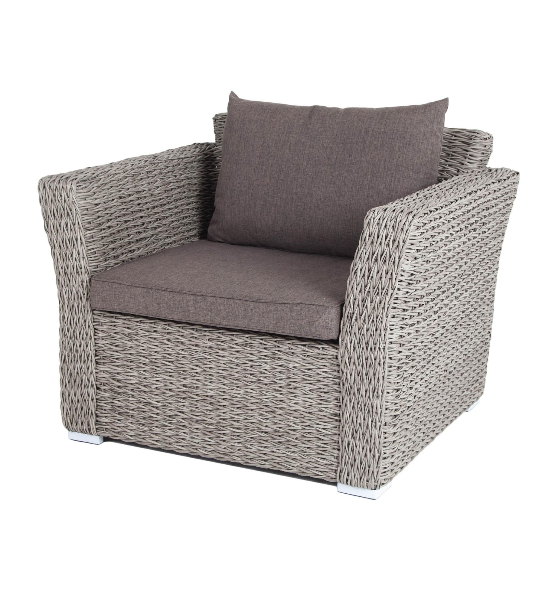 Кресло из искусственного ротанга «Капучино» графитового цвета, прекрасно подходит для обустройства веранды, а относительно небольшой вес, который составляет 21 кг, увеличивает мобильность данной модели.