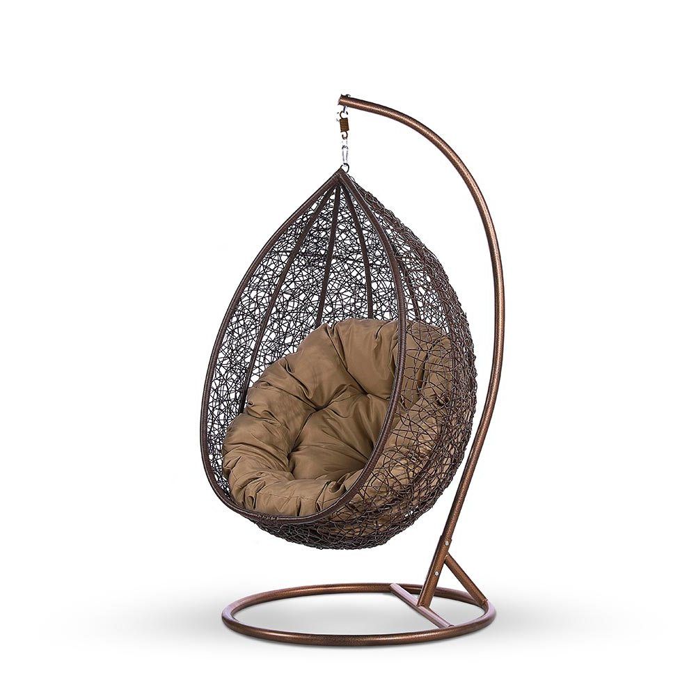 Материал плетения на корзине: искусственный ротанг коричневого цвета. Подушка бежевая. Ткань с водоотталкивающей пропиткой.