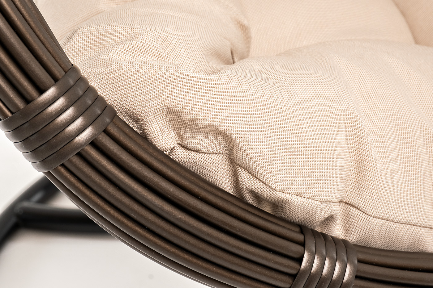 Уютное садовое кресло-кокон «Венеция» для организации лаунж-зоны. Основание изготовлено из стали окрашенного порошковой износостойкой краской черного оттенка, вручную оплетенного круглый искусственным ротангом бронзового цвета. Этот материал не боится перепадов температуры, прямых солнечных лучей, дождя и ветра.