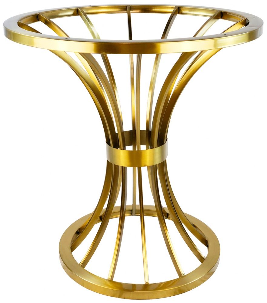Подстолье из полированной нержавеющей стали (матовое) золотого цвета (нитрит титана). Лаковое покрытие. Диаметр верхней части: 70 см, нижней части: 50 см. Рекомендуемый размер столешницы: O80.