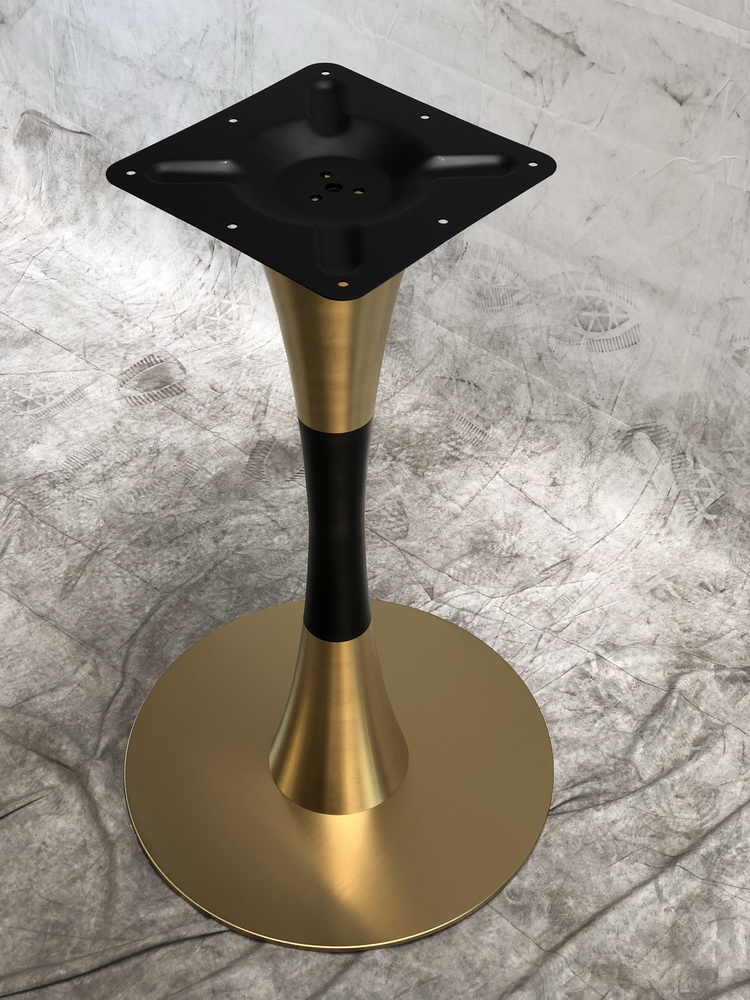 Подстолье матовое золотого цвета (нитрит титана) с черной вставкой. Лаковое покрытие. Размер основания: D45 см. Рекомендуемый размер столешницы: O80, 80х80.