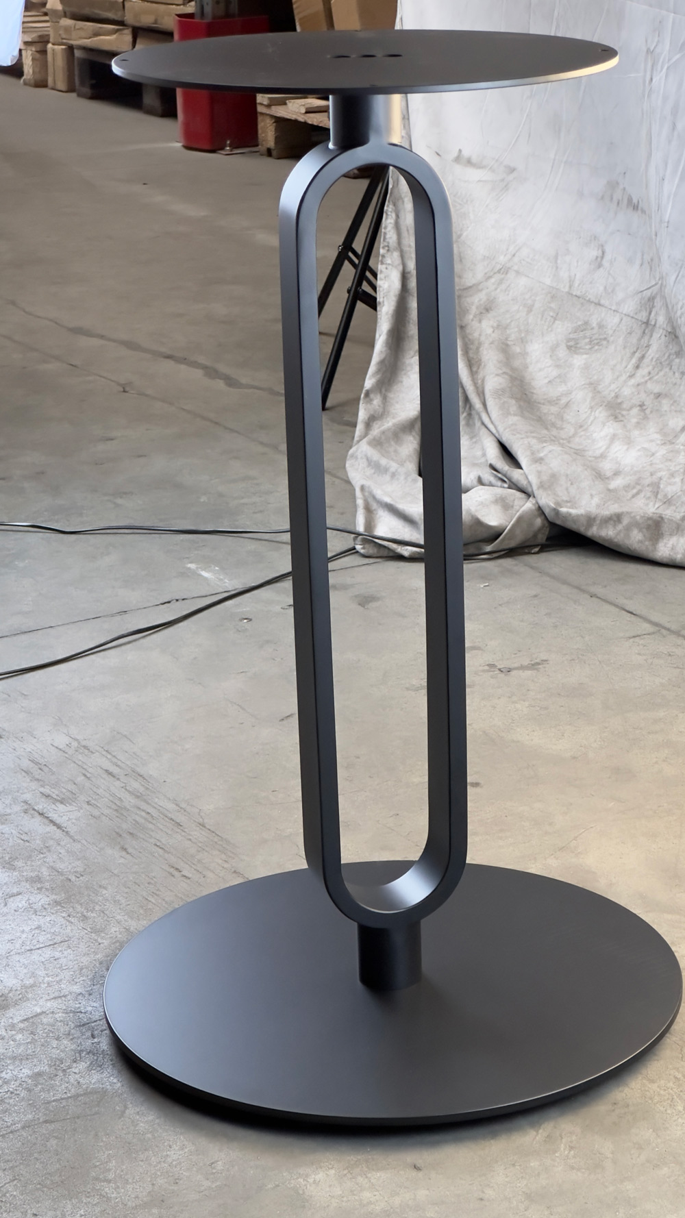 Подстолье из стали черного цвета. Размер верхнего крепления: D35 см. Рекомендуемый размер столешницы: D-70.