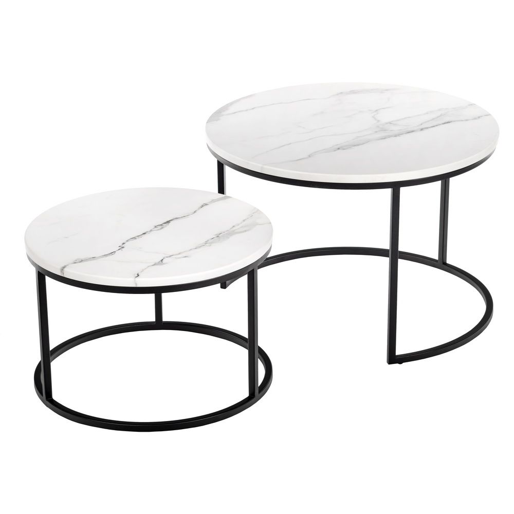 —Набор кофейных столиков Tango белый мрамор с черными ножками, 2шт