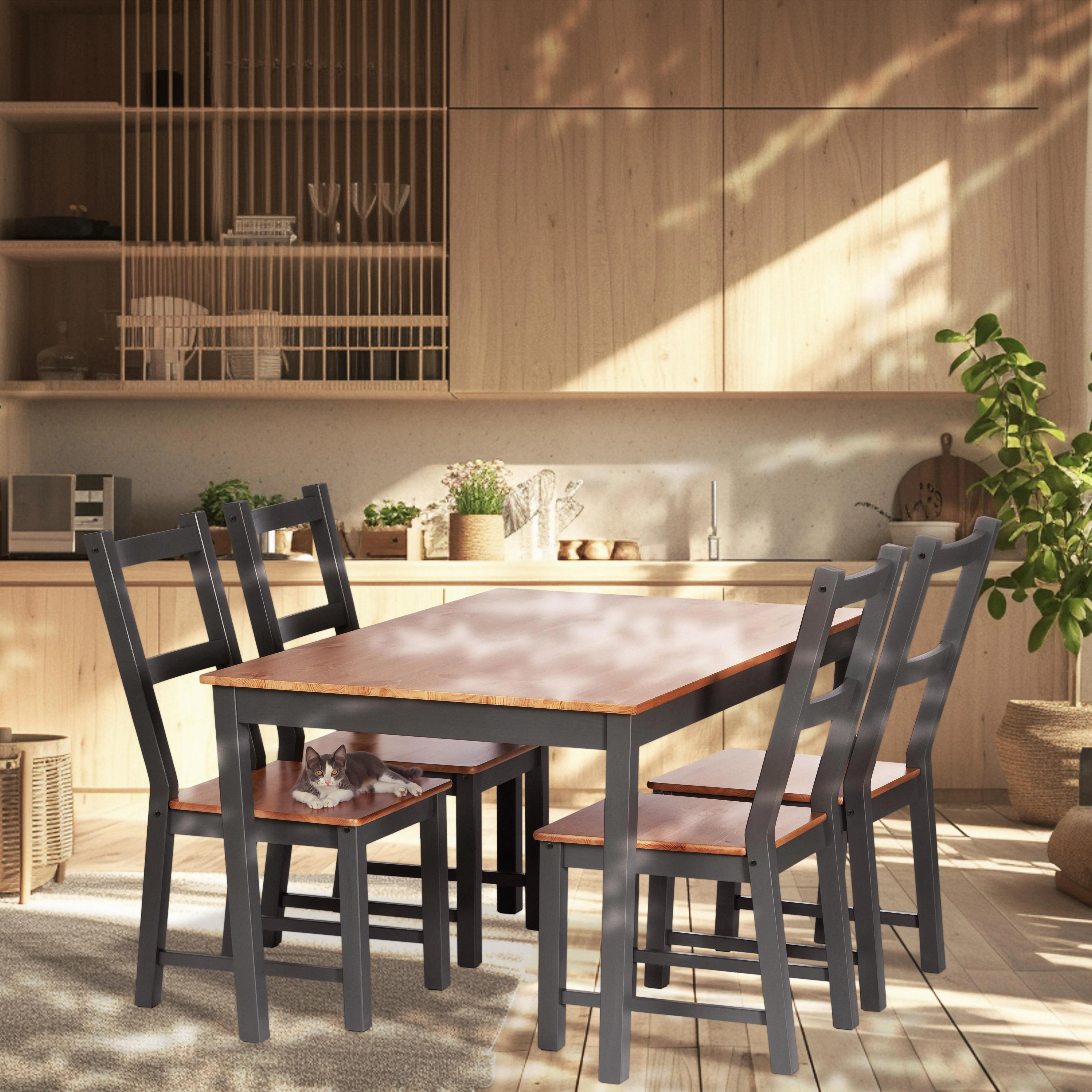 Обеденный комплект Соната из Дельфийской коллекции — это стильный и функциональный элемент интерьера вашей кухни или столовой. В комплект входят стол и четыре стула с прочным и долговечным каркасом из массива сосны. Античный оттенок столешницы и сидений стульев в сочетании с графитовым цветом придаёт интерьеру элегантность. Этот комплект будет хорошо смотреться как в городской квартире, так и в загородном доме, в столовой или на кухне, на террасе или веранде. Он позволяет разместить до четырёх человек и подходит для комфортного и длительного времяпрепровождения. Мебель поставляется в разобранном виде и легко собирается согласно инструкции.