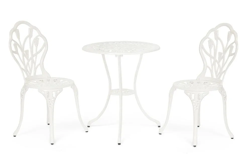Комплект уличной мебели «Вальс цветов» в цвете «темная бронза» - это оптимальный вариант для небольшого пространства. Изящный устойчивый стол с тремя ножками дополнен миниатюрной нижней полочкой. В комплекте к нему - два стула с крупным цветочным орнаментом. К стульям мы рекомендуем декоративные подушки «Моцарт», которые приобретаются отдельно.