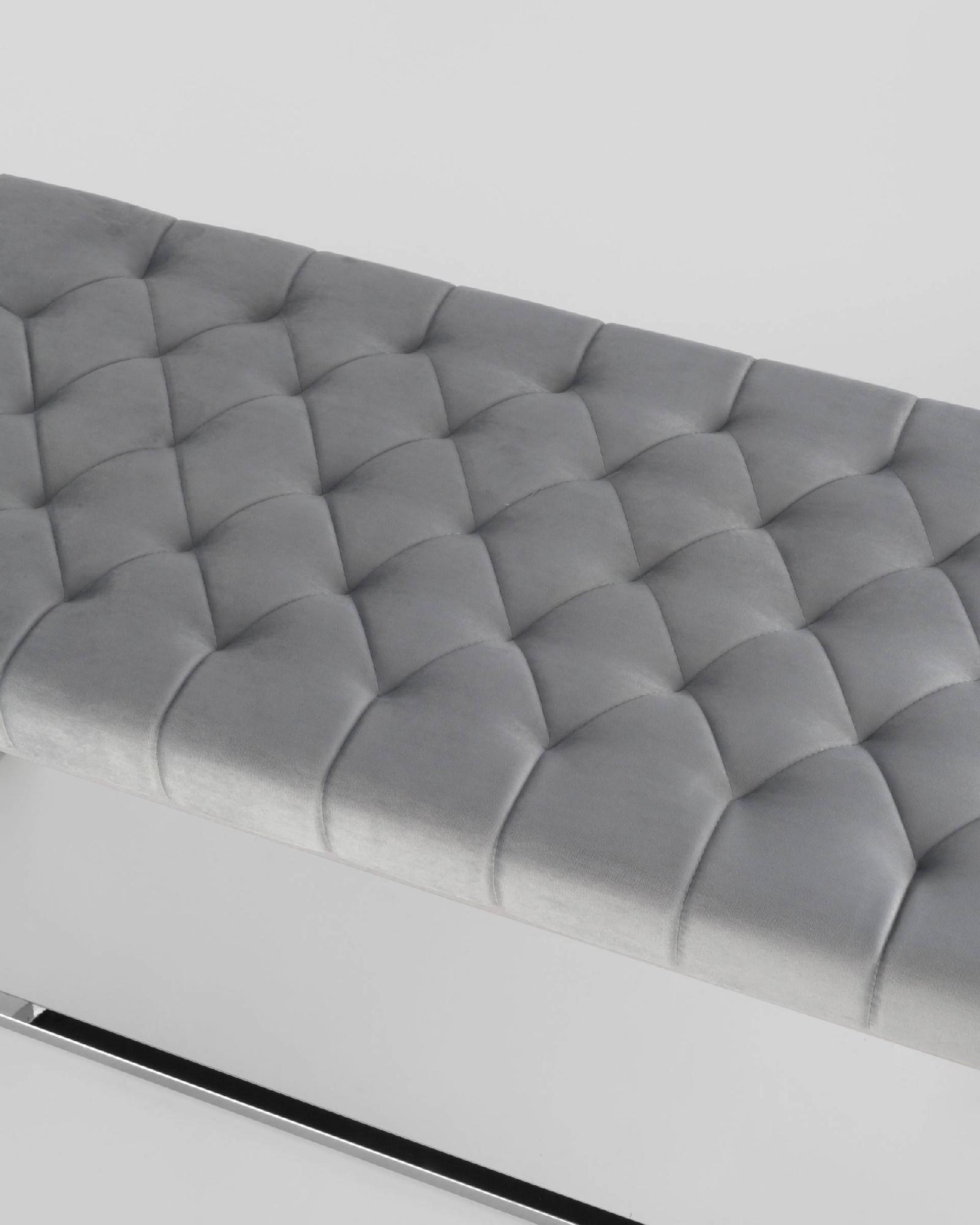 Банкетка ИНСИГНИЯ велюр серый сталь серебро - представляет собой стильное и удобное решение для вашего интерьера. Товар доступен в различных цветовых вариантах, включая серый, что позволяет выбрать оптимальные решение под ваш стиль и предпочтения. Мягкость сиденья обеспечивает комфорт и удобство. Каркас изделия - металл, обеспечивает прочность и долговечность конструкции, при этом сохраняя легкость и изящество дизайна.