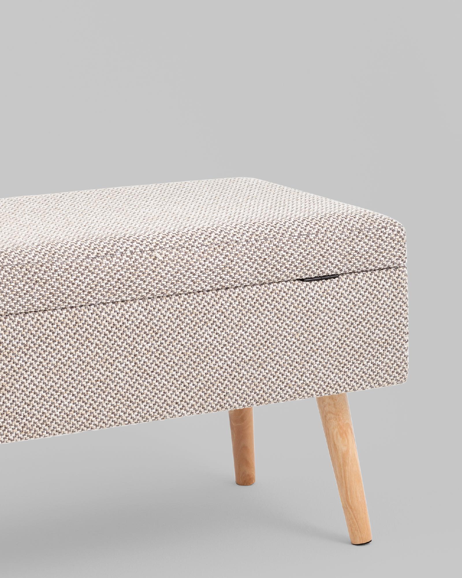 Банкетка Сторми - представляет собой стильное и удобное решение для вашего интерьера. Товар доступен в различных цветовых вариантах, включая серый и светлое дерево, что позволяет выбрать оптимальные решение под ваш стиль и предпочтения. Каркас изделия - дерево, обеспечивает прочность и долговечность конструкции, при этом сохраняя легкость и изящество дизайна.