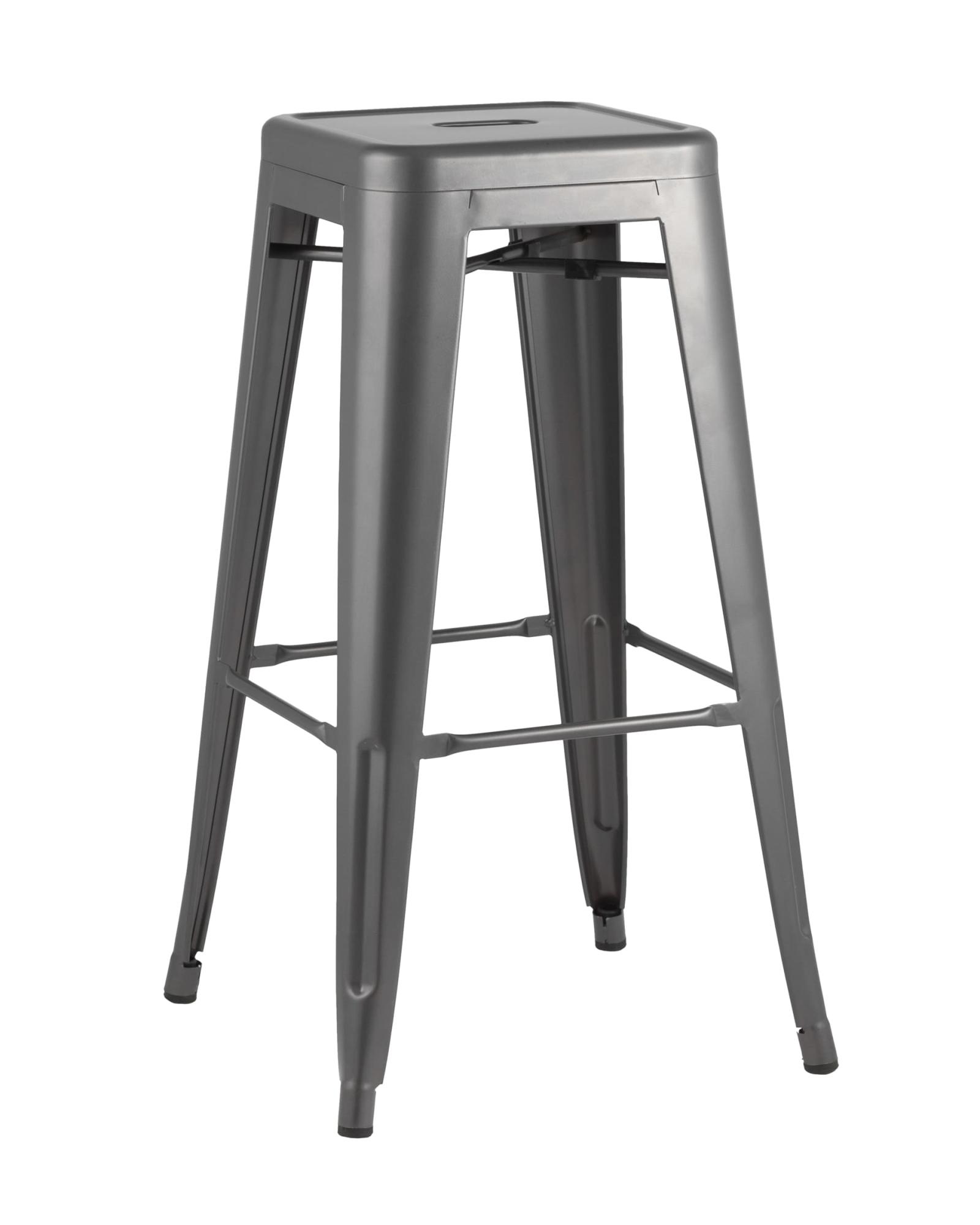 Стильный серебристый табурет для бара позволит сэкономить место в помещении и организовать застолье для большой компании. Стулья легко хранить компактными штабелями.