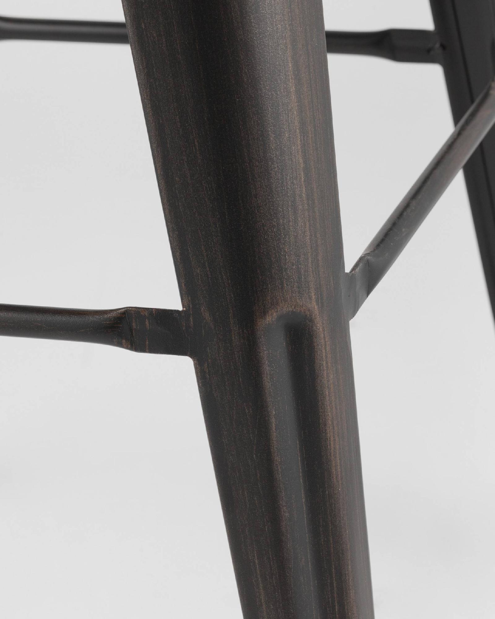 Барный табурет Tolix Черная патина подойдет для домашнего интерьера в стиле Лофт и органично впишется в обстановку современного кафе или ресторана. Отсутствие спинки у табурета компенсируется широким удобным сиденьем из темного дерева с гладкой поверхностью и натуральной фактурой. Расходящиеся металлические ножки, окрашенные в черный цвет, в сочетании с каркасом создают устойчивое основание. Высота табурета «Толикс» - 75 сантиметров, благодаря чему он подойдет для стандартной барной стойки.