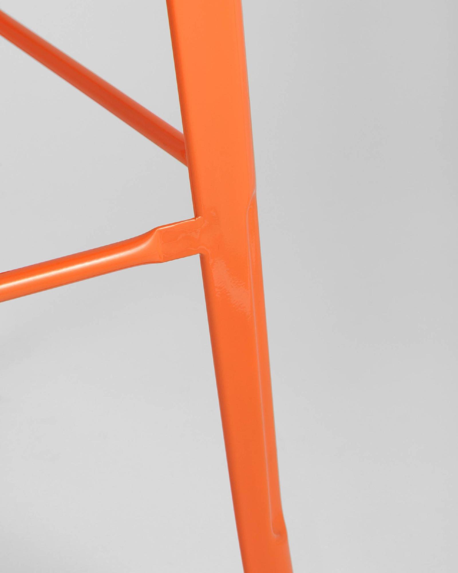 Барный табурет Tolix – воплощение качества и практичности. Удобный металлический стул на четырех опорах окрашен в оранжевый глянцевый цвет. Он может стать стильным дополнением интерьера модного заведения или домашней столовой.