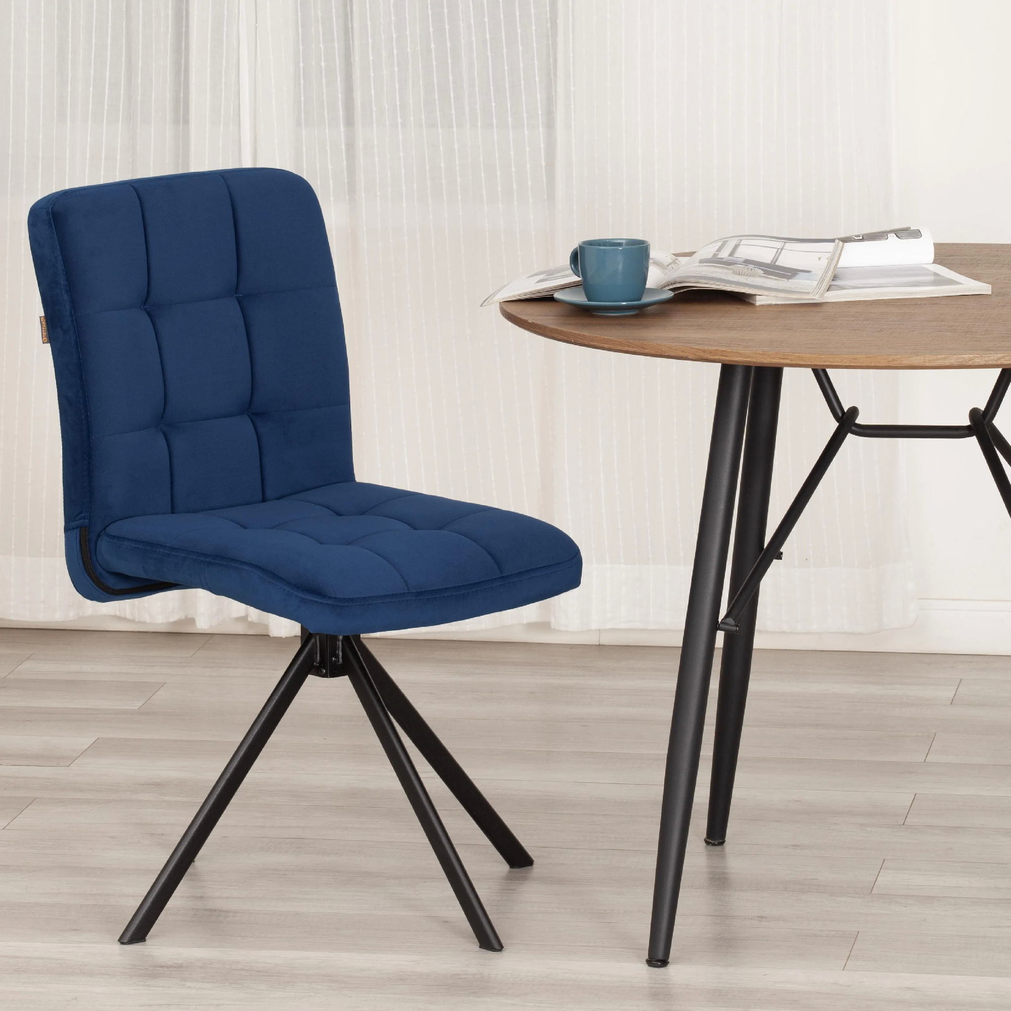 Стул Medeo станет отличным решением для любого помещения в доме или квартире, сочетая в себе функциональность, комфорт и привлекательный внешний вид. Особенностью уютного стула считается опора на 360 градусов. Модель с наполнителем из пенополиуретана (ППУ) плотностью 35-45 кг/м³ гарантирует высокий уровень удобства, что делает его подходящим для длительного использования. Основание сиденья выполнено из гнутоклееного шпона толщиной 10 мм. Металлический каркас спинки придает стулу прочность и основательность, обеспечивает оптимальную поддержку спины и поясницы. Металлические опоры долговечны и устойчивы к усиленной эксплуатации. Поворотный механизм в стульях — это инновационное решение, которое позволяет пользователям легко вращаться вокруг оси без необходимости передвигать сам стул. Модель обита износостойким велюром. Такой материал практичен, прост в уходе, приятен на ощупь. Стул Medeo обладает привлекательным внешним видом, способен украсить любое помещение, поможет создать в доме атмосферу уюта и комфорта. Модель поставляется в разобранном виде, необходима простая сборка по прилагаемой инструкции. Максимальная нагрузка 120 кг.
