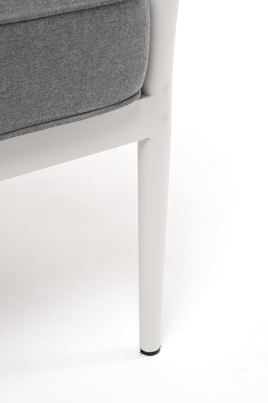 Кресло имеет алюминиевый каркас, окрашенный порошковой краской в светло-серый (RAL7035) цвет. Боковины каркаса вручную оплетены роупом - эластичными синтетическими лентами, изготовленными из высокопрочных полиэфирных волокон. Цвет оплетки - серо-коричневый.
