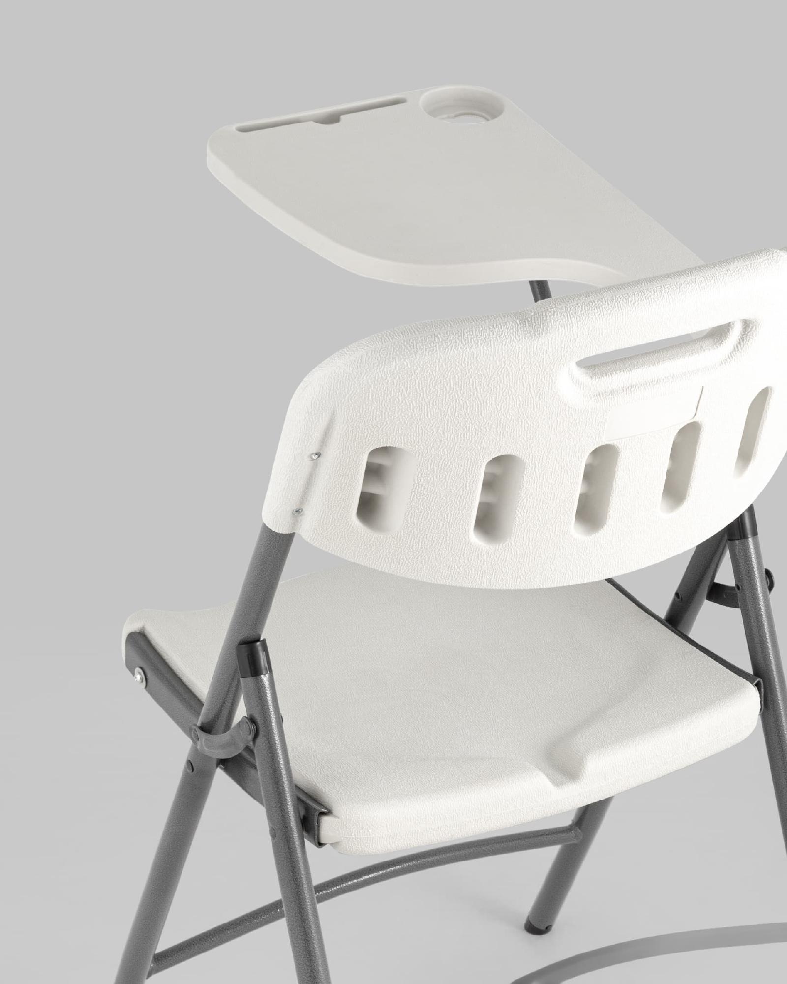 Стул складной банкетный Кейт со столиком (с пюпитром) - представляет собой стильное и удобное решение для вашего интерьера. Товар доступен в различных цветовых вариантах, включая белый, что позволяет выбрать оптимальные решение под ваш стиль и предпочтения. Каркас изделия - металл, обеспечивает прочность и долговечность конструкции, при этом сохраняя легкость и изящество дизайна.