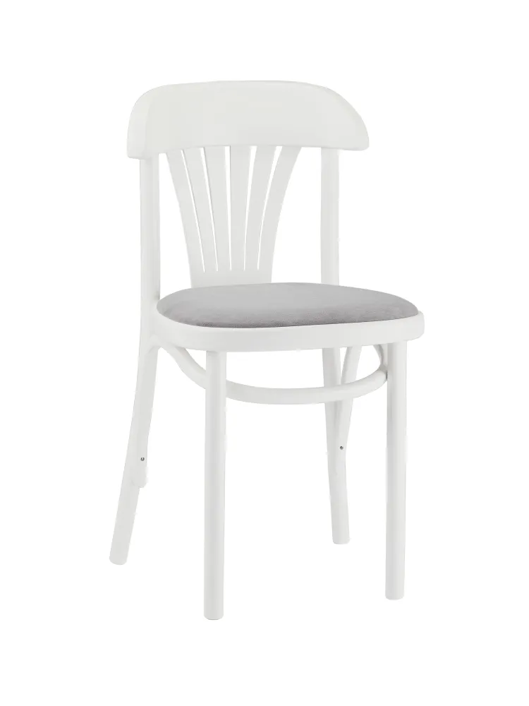 Венский деревянный стул для кухни "Астра" белая эмаль с мягким серым сиденьем.